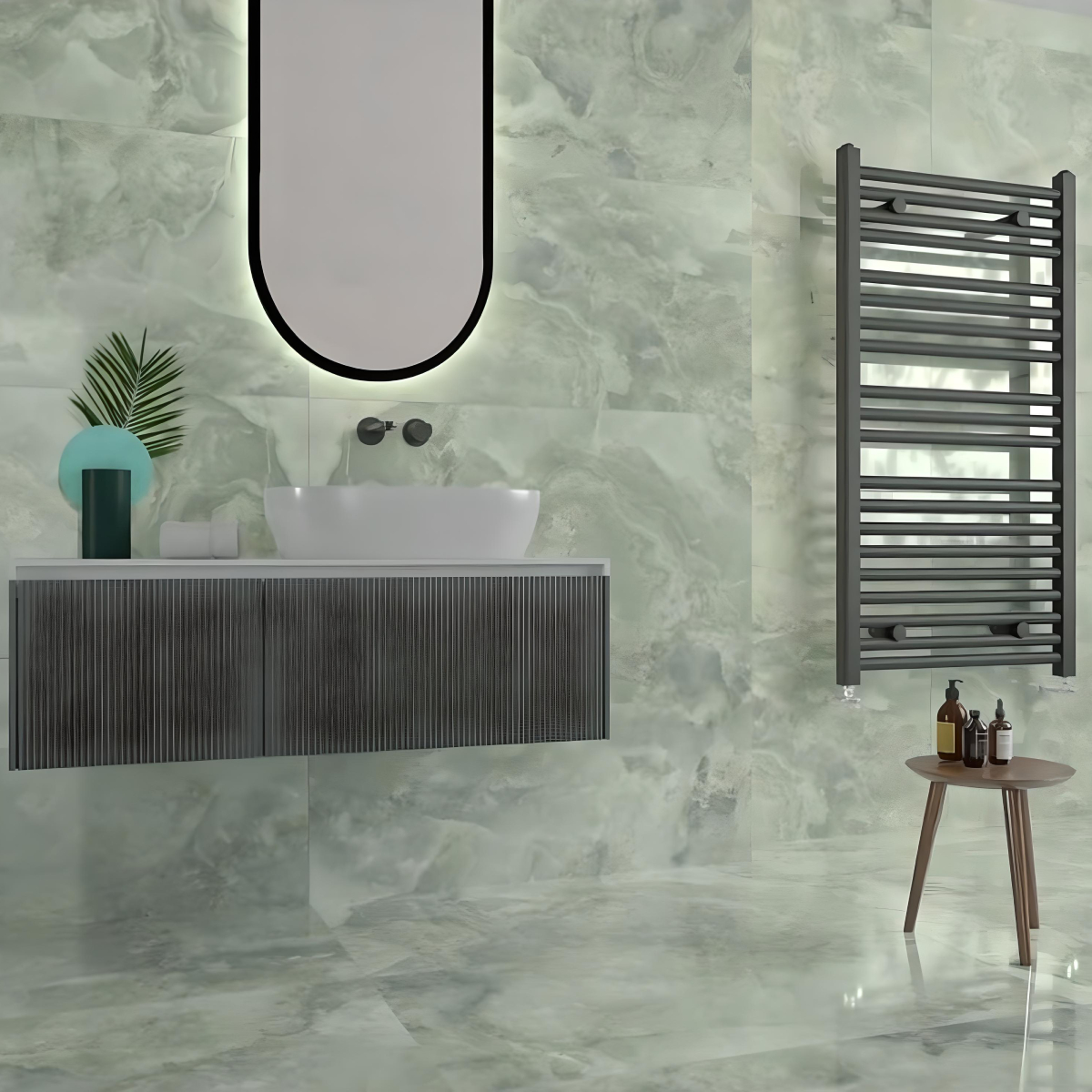 Azulejo porcelánico rectificado de forma rectangular e imitación a mármol. Descubre el encanto atemporal del pavimento cerámico. Estos azulejos con acabado brillo aportan un toque de elegancia a tu espacio.