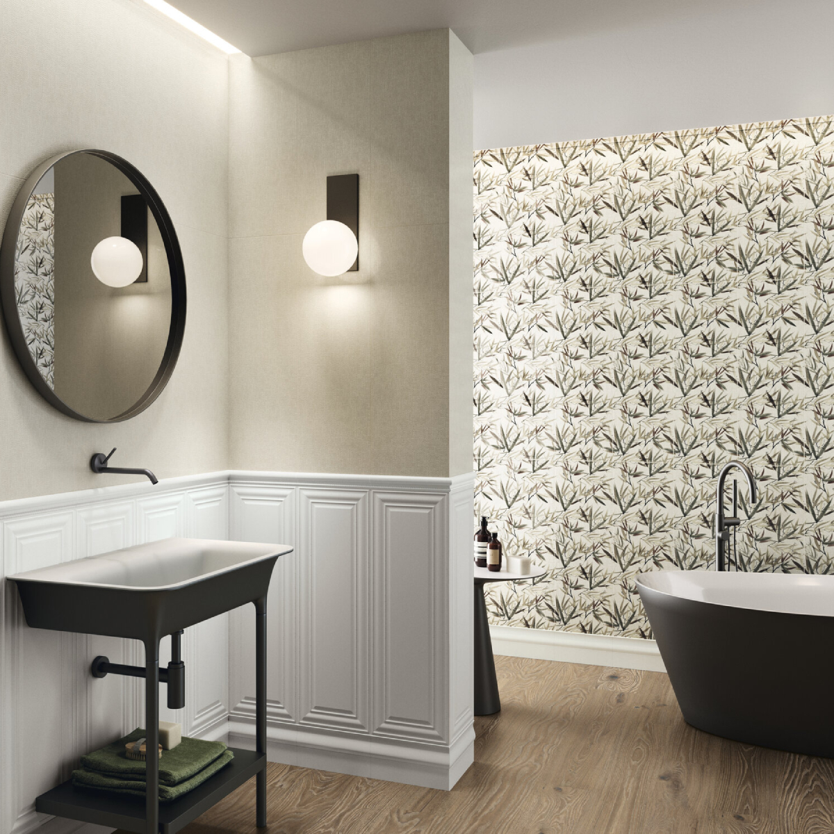 Azulejo pasta blanca mate rectificado de forma rectangular y 8,90mm de espesor. La impresión digital ha marcado un antes y un después en la cerámica. Gracias a ella, colecciones como Fables alcanzan un nivel de detallismo impresionante, que favorece la convergencia de materiales y abre nuevas posibilidades en diseño. Uno de los elementos clave que inspira Fables es la boiserie, paneles de madera en las paredes muy populares en Francia durante los siglos XVII y XVIII. De hecho, Fables se inspira directamente en una de las habitaciones del Hotel Rohan en París, donde aún se conserva una estancia llena de boiseries, conocida como «Le Cabinet des Fables de la Fontaine». Este vínculo con la tradición francesa de la boiserie, junto con la renovación de la colección a través de nuevos colores y zócalos, reinterpreta el concepto de elegancia fusionando la inspiración clásica con la vanguardia.